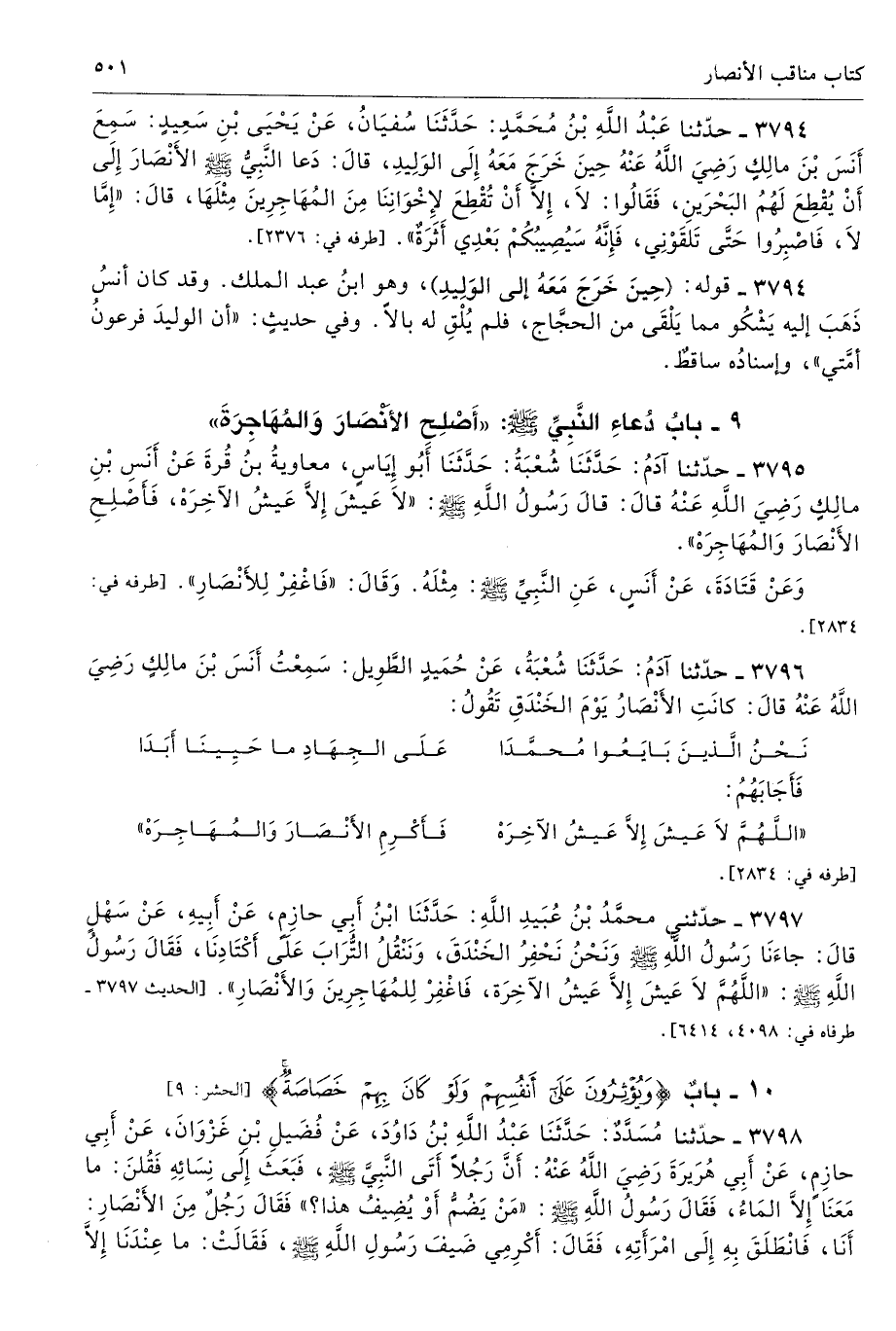 9 - باب دُعَاءُ النَّبِىِّ - صلى الله عليه وسلم -: «أَصْلِحِ الأَنْصَارَ وَالْمُهَاجِرَةَ»