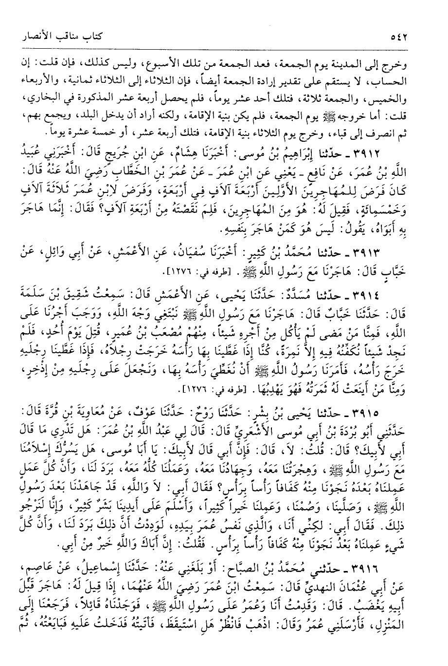 3913 - حَدَّثَنَا مُحَمَّدُ بْنُ كَثِيرٍ أَخْبَرَنَا سُفْيَانُ عَنِ الأَعْمَشِ عَنْ أَبِى وَائِلٍ عَنْ خَبَّابٍ قَالَ هَاجَرْنَا مَعَ رَسُولِ اللَّهِ - صلى الله عليه وسلم -. أطرافه 1276، 3897، 3914، 4047، 4082، 6432، 6448 - تحفة 3514