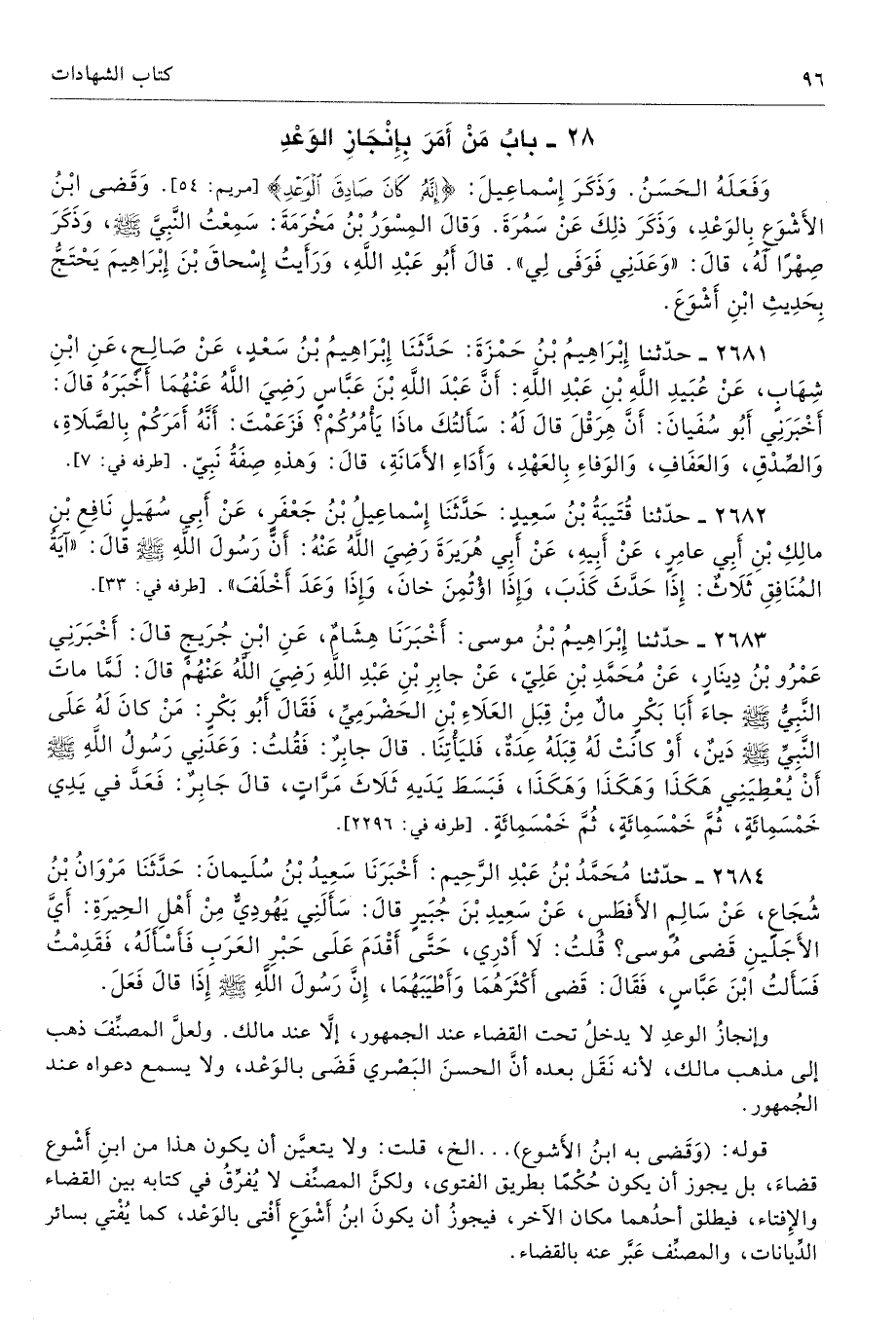 28 - باب مَنْ أَمَرَ بِإِنْجَازِ الْوَعْدِ