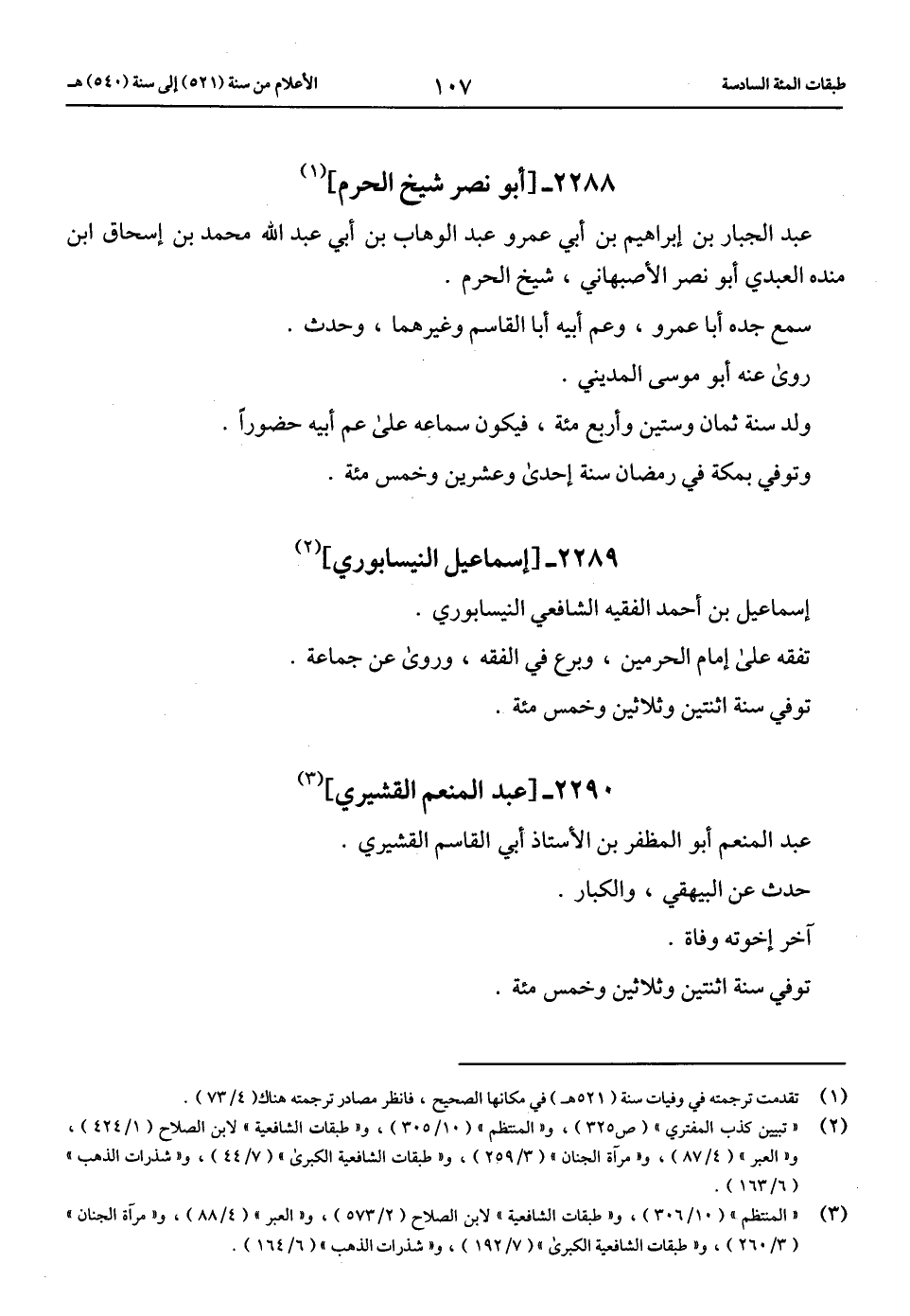 (3) «المنتظم» (10/ 306)، و «طبقات الشافعية» لابن الصلاح (2/ 573)، و «العبر» (4/ 88)، و «مرآة الجنان» (3/ 260)، و «طبقات الشافعية الكبرى» (7/ 192)، و «شذرات الذهب» (6/ 164).