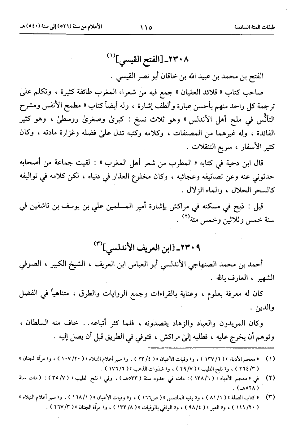 (1) «معجم الأدباء» (6/ 137)، و «وفيات الأعيان» (4/ 23)، و «سير أعلام النبلاء» (20/ 107)، و «مرآة الجنان» (3/ 264)، و «نفح الطيب» (7/ 29)، و «شذرات الذهب» (6/ 176).
