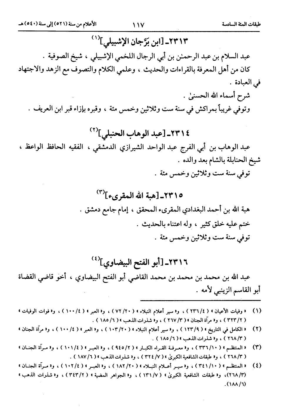 (1) «وفيات الأعيان» (4/ 236)، و «سير أعلام النبلاء» (20/ 72)، و «العبر» (4/ 100)، و «فوات الوفيات» (2/ 323)، و «مرآة الجنان» (3/ 267)، و «شذرات الذهب» (6/ 185).