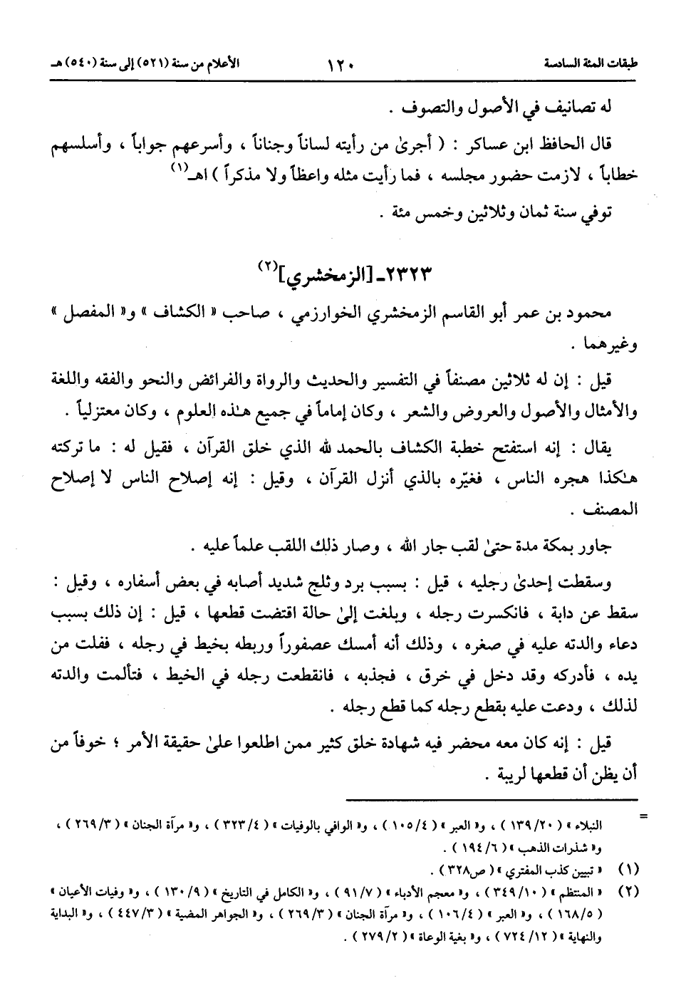 (2) «المنتظم» (10/ 349)، و «معجم الأدباء» (7/ 91)، و «الكامل في التاريخ» (9/ 130)، و «وفيات الأعيان» (5/ 168)، و «العبر» (4/ 106)، و «مرآة الجنان» (3/ 269)، و «الجواهر المضية» (3/ 447)، و «البداية والنهاية» (12/ 724)، و «بغية الوعاة» (2/ 279).