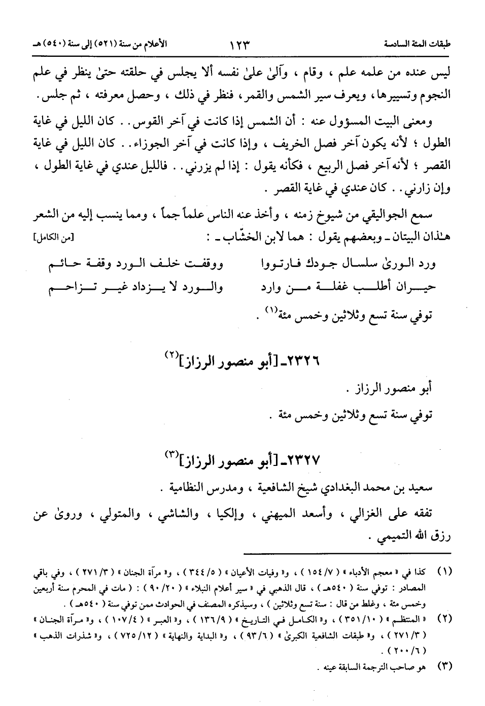(2) «المنتظم» (10/ 351)، و «الكامل في التاريخ» (9/ 136)، و «العبر» (4/ 107)، و «مرآة الجنان» (3/ 271)، و «طبقات الشافعية الكبرى» (6/ 93)، و «البداية والنهاية» (12/ 725)، و «شذرات الذهب» (6/ 200).