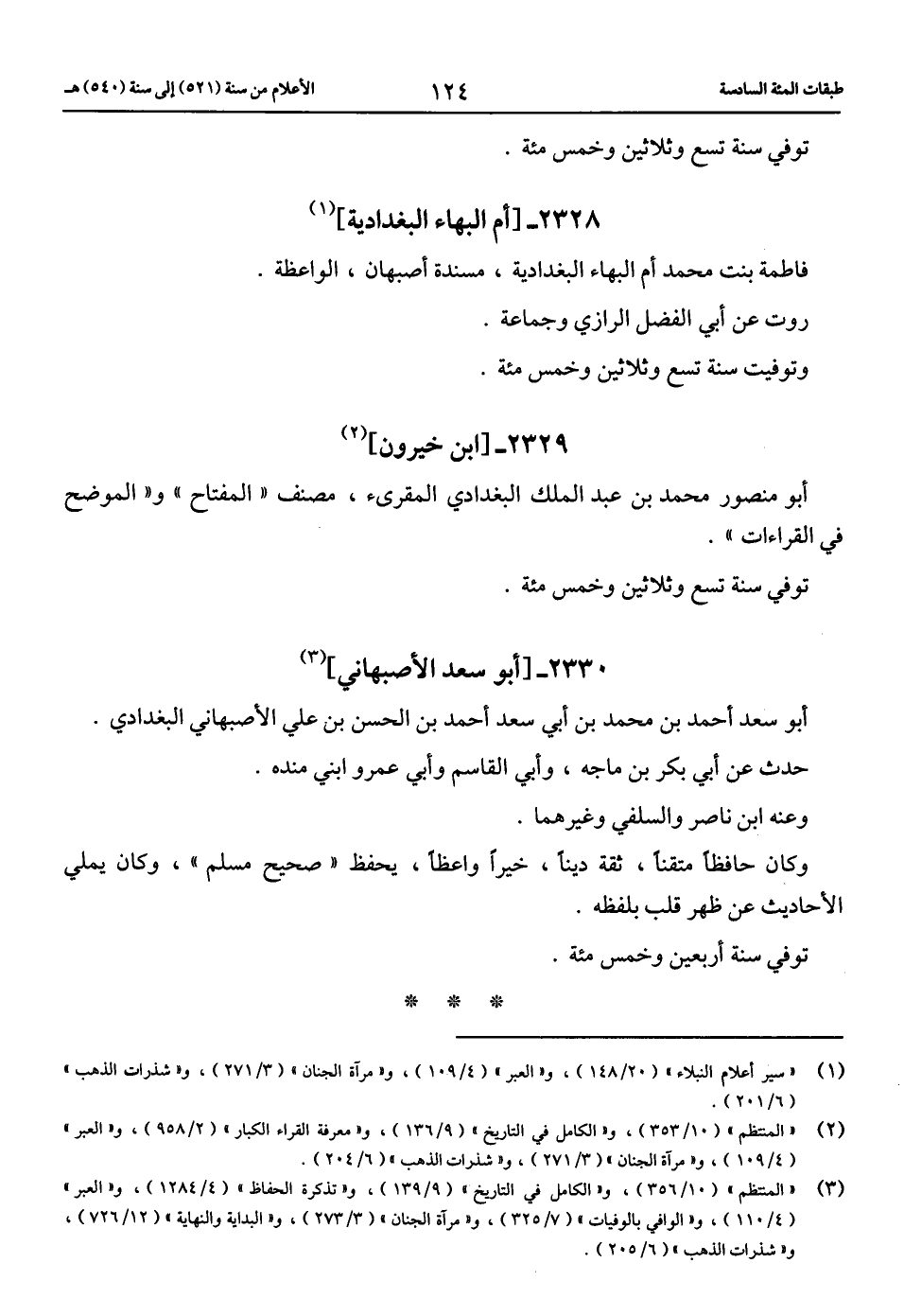 (2) «المنتظم» (10/ 353)، و «الكامل في التاريخ» (9/ 136)، و «معرفة القراء الكبار» (2/ 958)، و «العبر» (4/ 109)، و «مرآة الجنان» (3/ 271)، و «شذرات الذهب» (6/ 204).