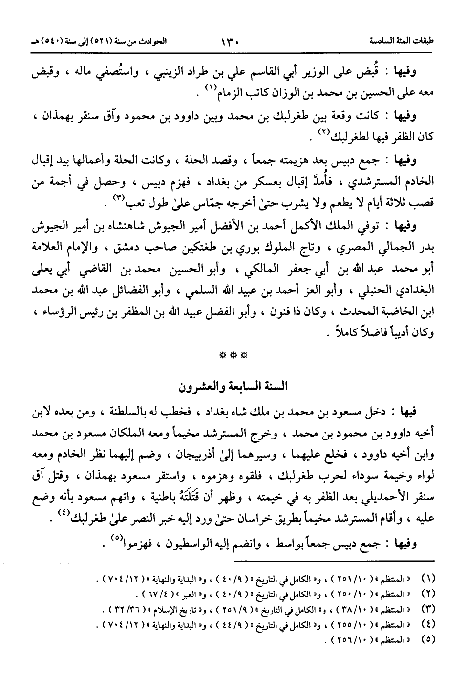 (1) «المنتظم» (10/ 251)، و «الكامل في التاريخ» (9/ 40)، و «البداية والنهاية» (12/ 704).