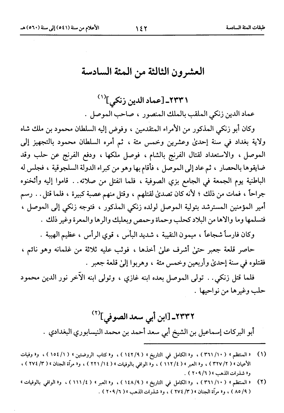 (2) «المنتظم» (10/ 361)، و «الكامل في التاريخ» (9/ 148)، و «العبر» (4/ 111)، و «الوافي بالوفيات» (9/ 85)، و «مرآة الجنان» (3/ 274)، و «شذرات الذهب» (6/ 209).