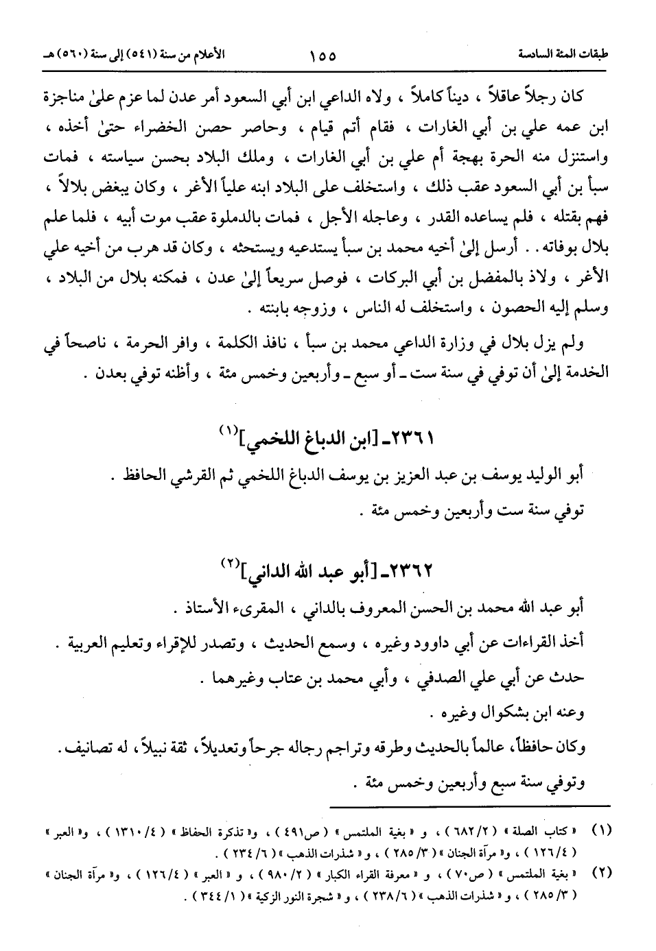 (2) «بغية الملتمس» (ص 70)، و «معرفة القراء الكبار» (2/ 980)، و «العبر» (4/ 126)، و «مرآة الجنان» (3/ 285)، و «شذرات الذهب» (6/ 238)، و «شجرة النور الزكية» (1/ 344).