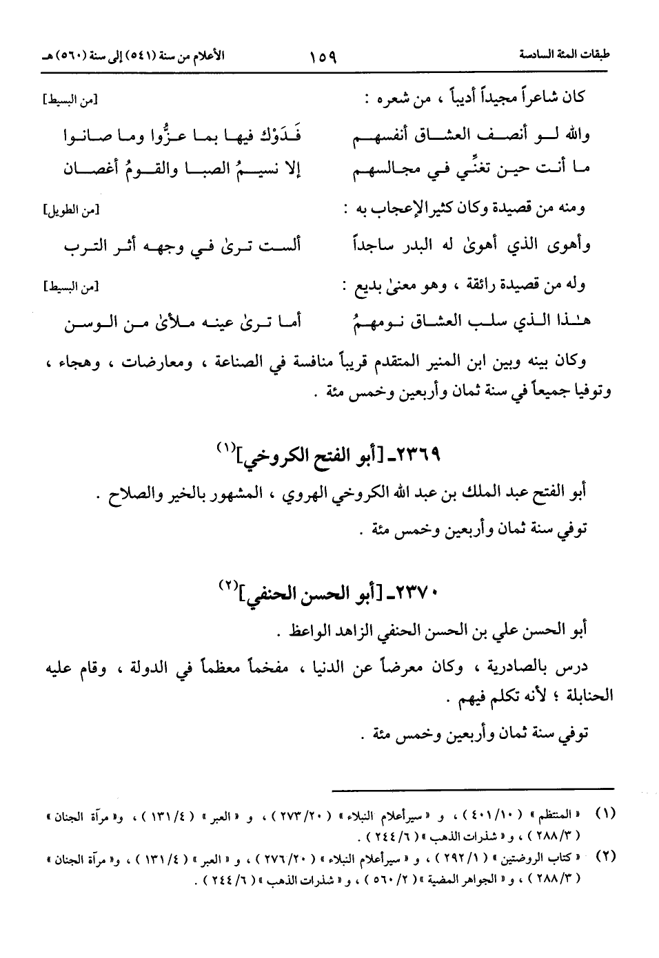 (1) «المنتظم» (10/ 401)، و «سير أعلام النبلاء» (20/ 273)، و «العبر» (4/ 131)، و «مرآة الجنان» (3/ 288)، و «شذرات الذهب» (6/ 244).