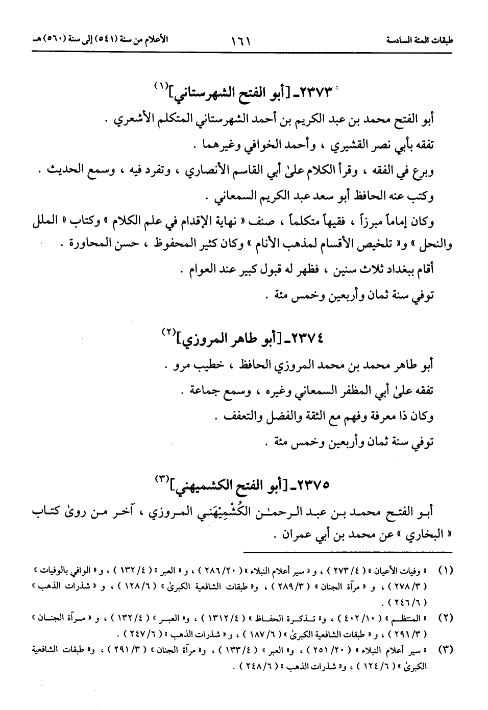 (3) «سير أعلام النبلاء» (20/ 251)، و «العبر» (4/ 133)، و «مرآة الجنان» (3/ 291)، و «طبقات الشافعية الكبرى» (6/ 124)، و «شذرات الذهب» (6/ 248).