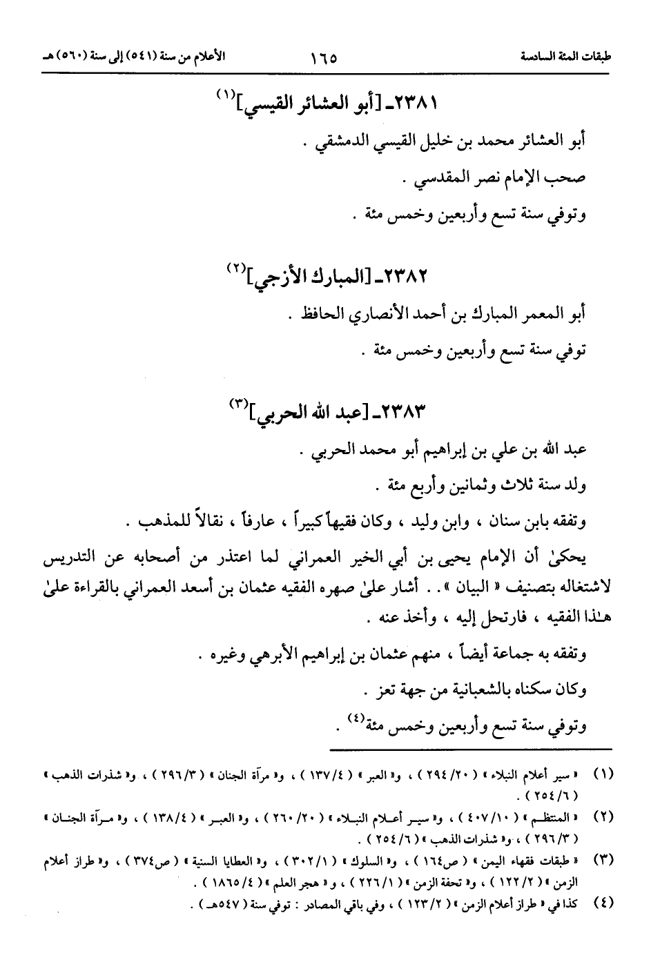 (2) «المنتظم» (10/ 407)، و «سير أعلام النبلاء» (20/ 260)، و «العبر» (4/ 138)، و «مرآة الجنان» (3/ 296)، و «شذرات الذهب» (6/ 254).
