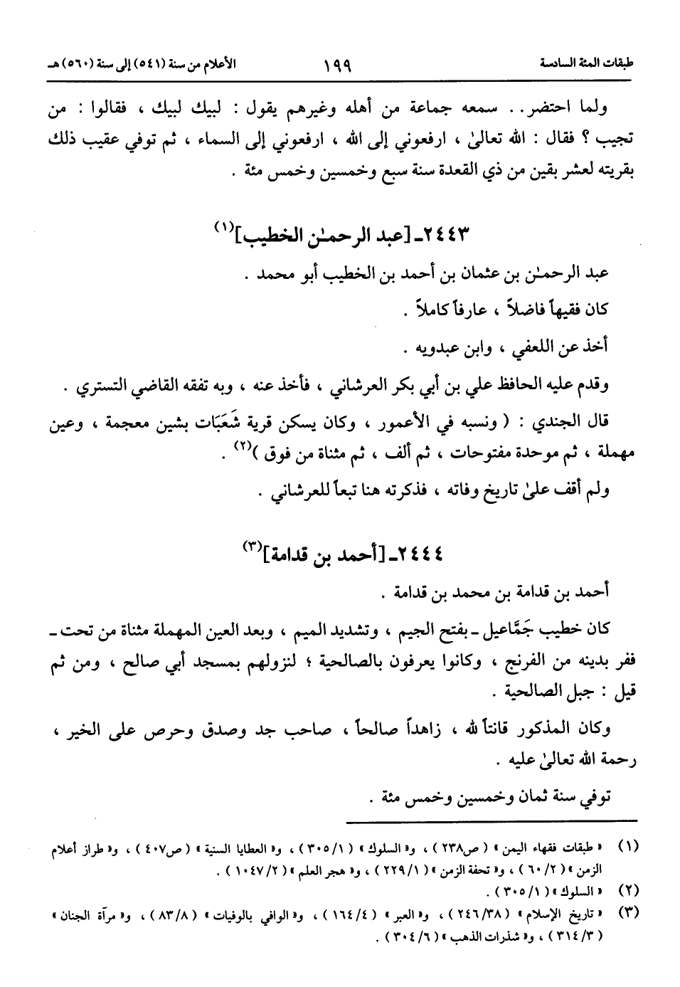(3) «تاريخ الإسلام» (38/ 246)، و «العبر» (4/ 164)، و «الوافي بالوفيات» (8/ 83)، و «مرآة الجنان» (3/ 314)، و «شذرات الذهب» (6/ 304).