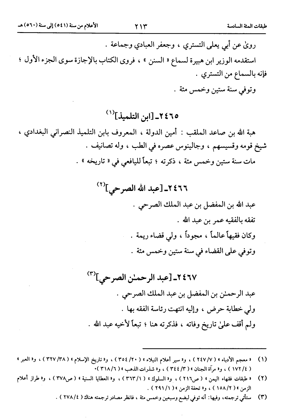 (1) «معجم الأدباء» (7/ 247)، و «سير أعلام النبلاء» (20/ 354)، و «تاريخ الإسلام» (38/ 327)، و «العبر» (4/ 172)، و «مرآة الجنان» (3/ 344)، و «شذرات الذهب» (6/ 318).