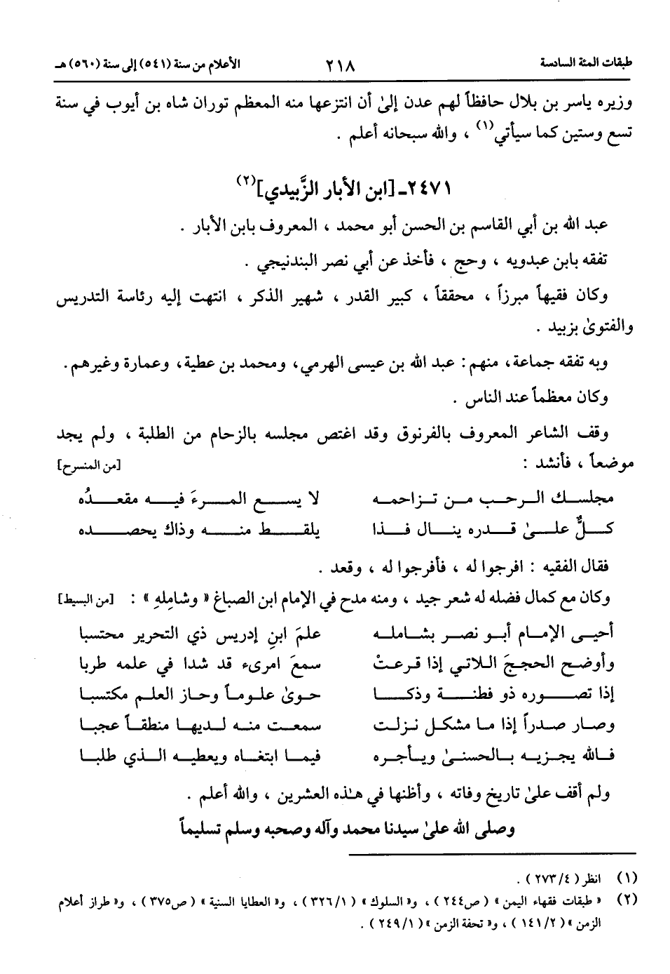 (2) «طبقات فقهاء اليمن» (ص 244)، و «السلوك» (1/ 326)، و «العطايا السنية» (ص 375)، و «طراز أعلام الزمن» (2/ 141)، و «تحفة الزمن» (1/ 249).