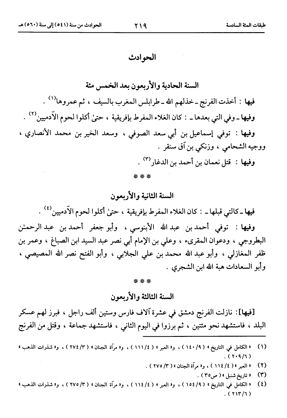 (4) «الكامل في التاريخ» (9/ 154)، و «العبر» (4/ 114)، و «مرآة الجنان» (3/ 275)، و «شذرات الذهب» (6/ 213).