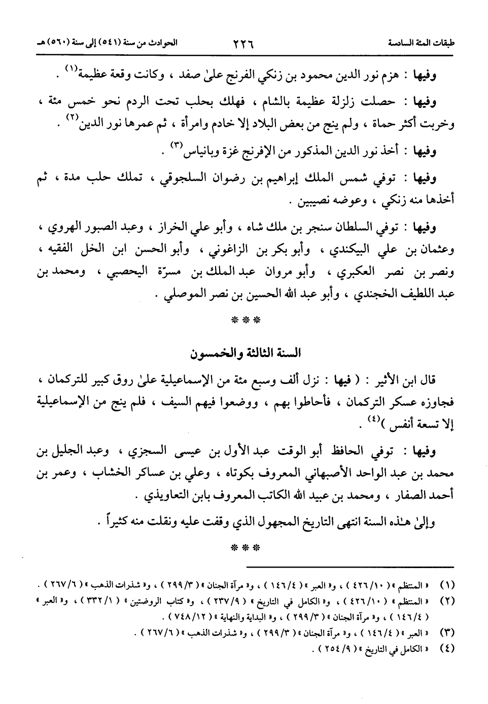 (2) «المنتظم» (10/ 426)، و «الكامل في التاريخ» (9/ 237)، و «كتاب الروضتين» (1/ 332)، و «العبر» (4/ 146)، و «مرآة الجنان» (3/ 299)، و «البداية والنهاية» (12/ 748).