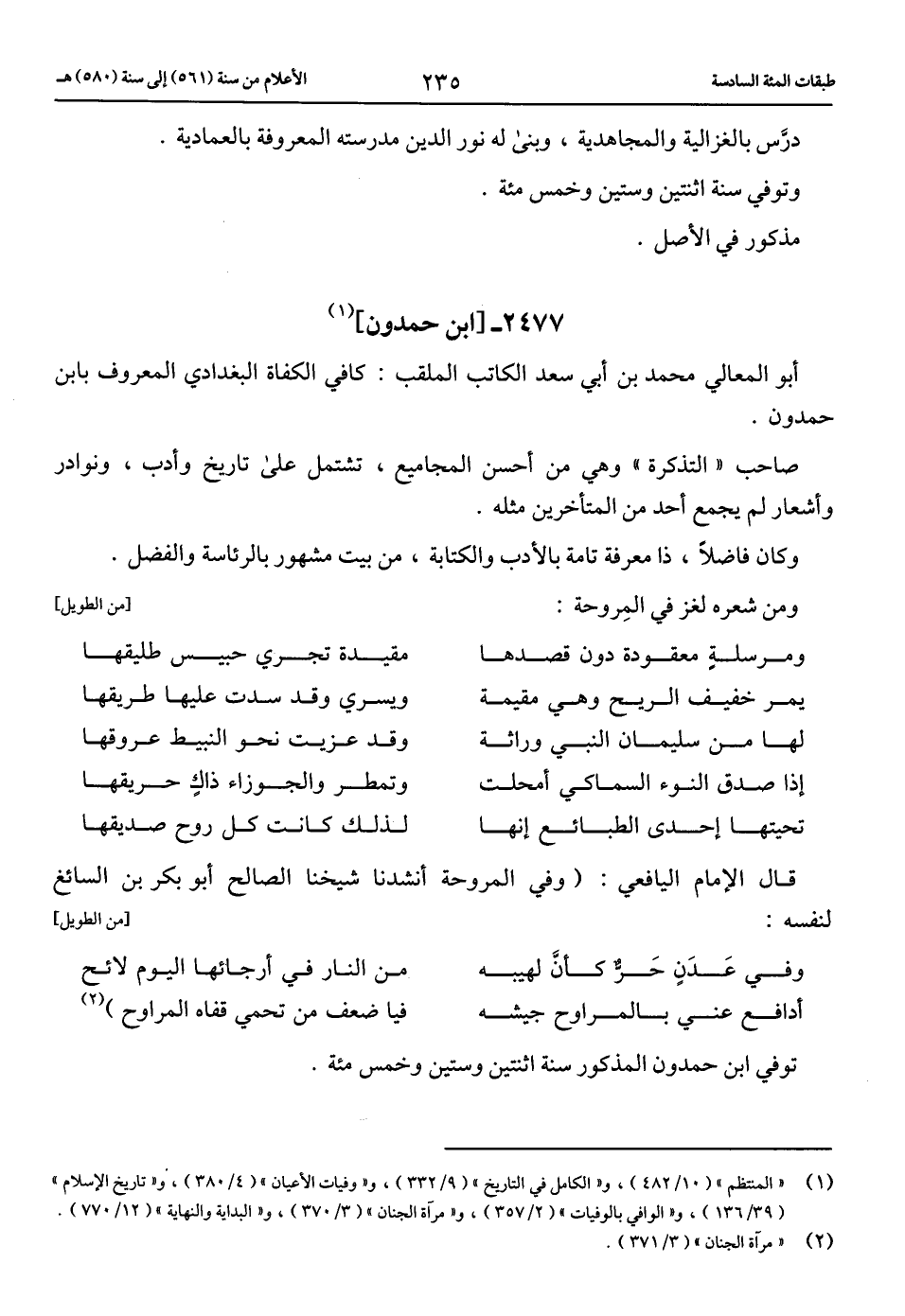 توفي ابن حمدون المذكور سنة اثنتين وستين وخمس مائة.