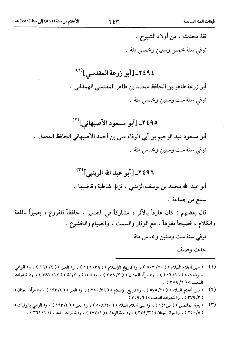 أبو زرعة طاهر بن الحافظ محمد بن طاهر المقدسي الهمذاني.