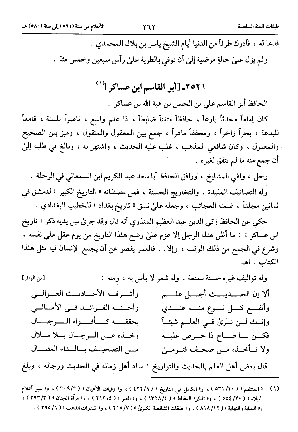 الحافظ أبو القاسم علي بن الحسن بن هبة الله بن عساكر.