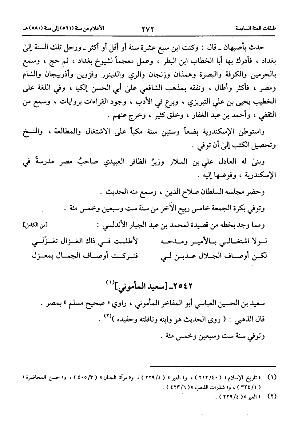 (1) «تاريخ الإسلام» (40/ 212)، و «العبر» (4/ 229)، و «مرآة الجنان» (3/ 405)، و «حسن المحاضرة» (1/ 324)، و «شذرات الذهب» (6/ 423).