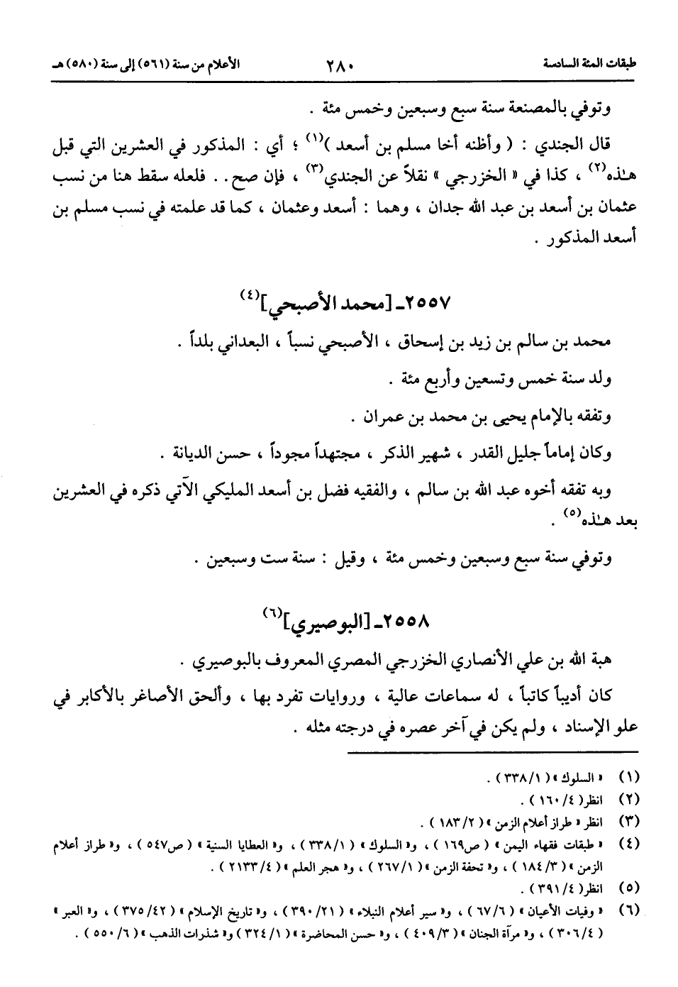 (6) «وفيات الأعيان» (6/ 67)، و «سير أعلام النبلاء» (21/ 390)، و «تاريخ الإسلام» (42/ 375)، و «العبر» (4/ 306)، و «مرآة الجنان» (3/ 409)، و «حسن المحاضرة» (1/ 324) و «شذرات الذهب» (6/ 550).