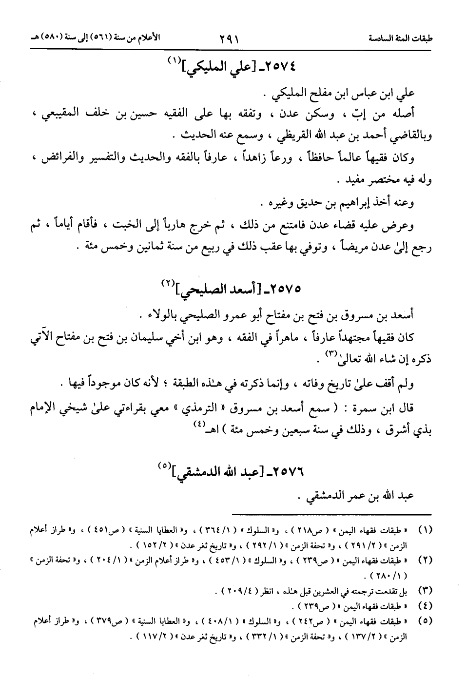 (5) «طبقات فقهاء اليمن» (ص 242)، و «السلوك» (1/ 408)، و «العطايا السنية» (ص 379)، و «طراز أعلام الزمن» (2/ 137)، و «تحفة الزمن» (1/ 332)، و «تاريخ ثغر عدن» (2/ 117).