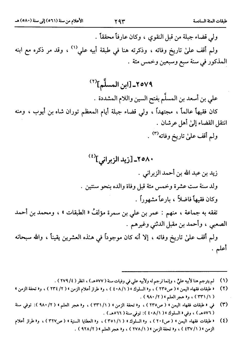 (3) في «طبقات فقهاء اليمن» (ص 235)، و «تحفة الزمن» (1/ 331)، و «هجر العلم» (2/ 980): توفي سنة (576 هـ)، وفي «السلوك» (1/ 408): توفي سنة (566 هـ).
