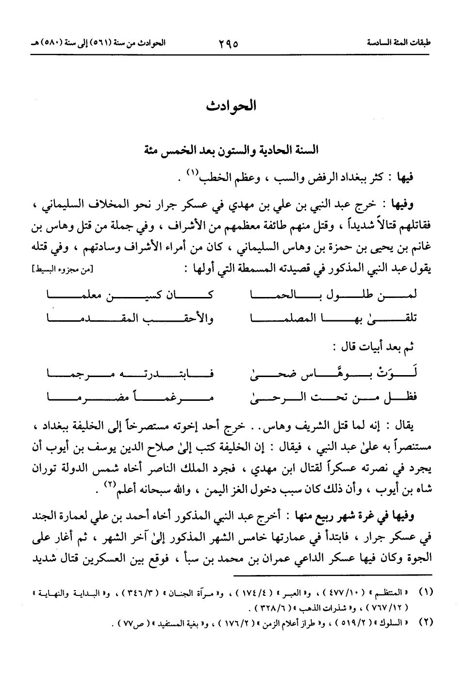 وفيها: خرج عبد النبي بن علي بن مهدي في عسكر جرار نحو المخلاف السليماني، فقاتلهم قتالا شديدا، وقتل منهم طائفة معظمهم من الأشراف، وفي جملة من قتل وهاس بن غانم بن يحيى بن حمزة بن وهاس السليماني، كان من أمراء الأشراف وسادتهم، وفي قتله يقول عبد النبي المذكور في قصيدته المسمطة التي أولها: [من مجزوء البسيط]