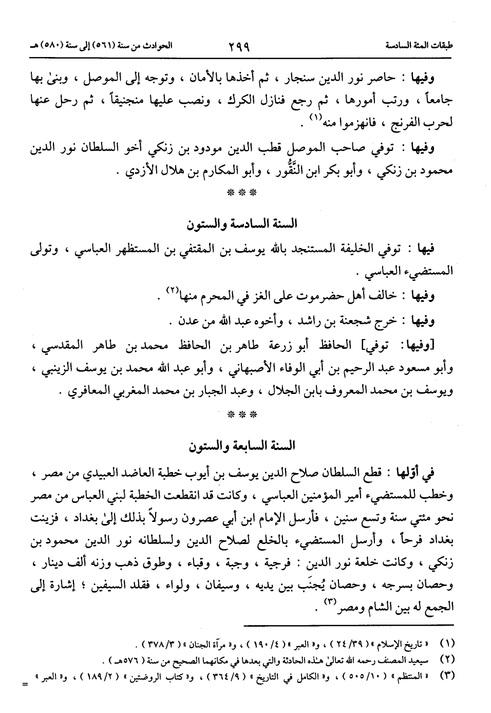 (3) «المنتظم» (10/ 505)، و «الكامل في التاريخ» (9/ 364)، و «كتاب الروضتين» (2/ 189)، و «العبر»