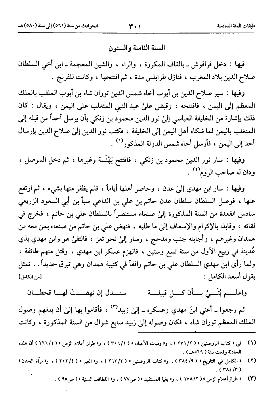(2) «الكامل في التاريخ» (9/ 384)، و «كتاب الروضتين» (2/ 262)، و «العبر» (4/ 202)، و «مرآة الجنان» (3/ 384).