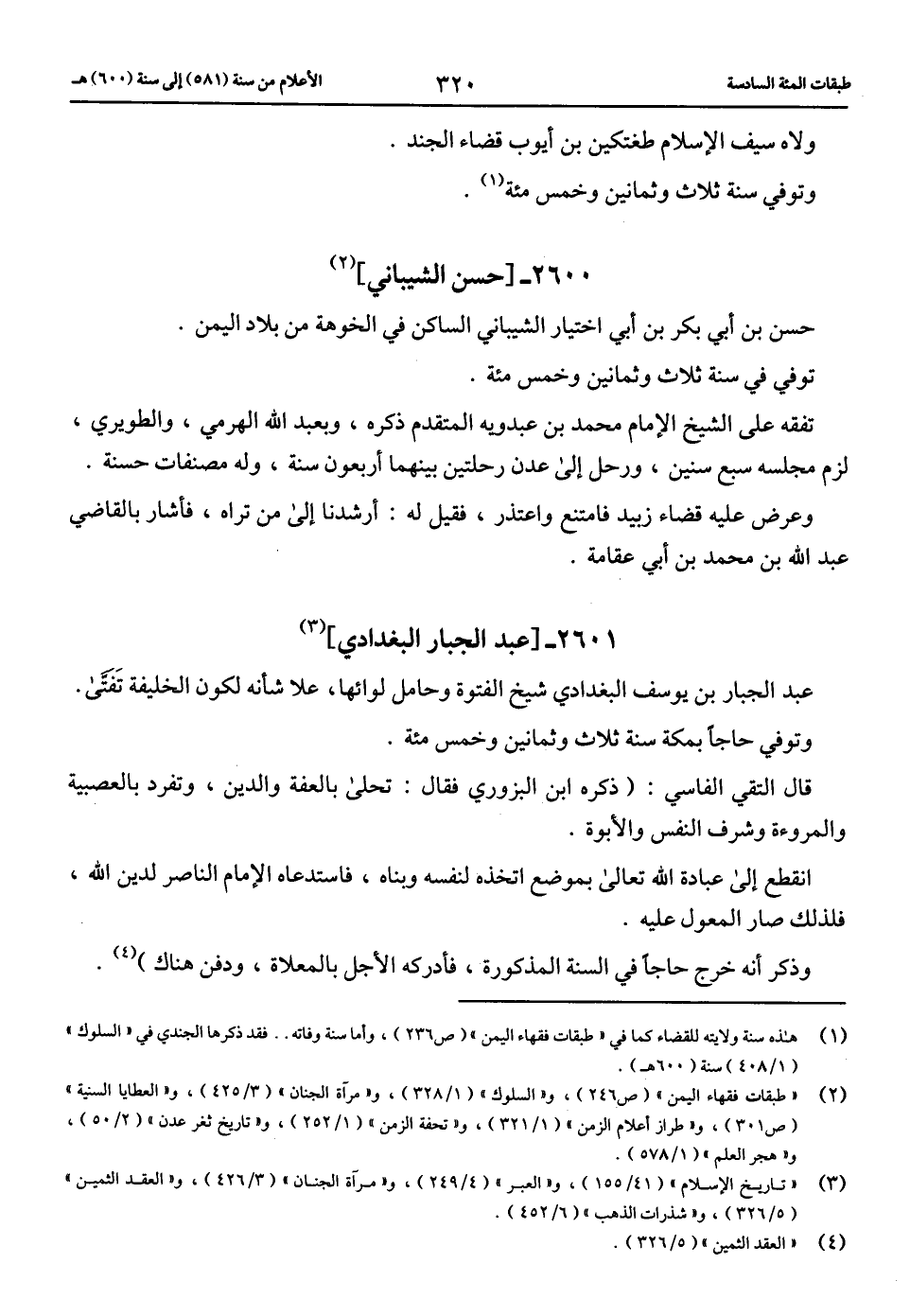 (1) هذه سنة ولايته للقضاء كما في «طبقات فقهاء اليمن» (ص 236)، وأما سنة وفاته .. فقد ذكرها الجندي في «السلوك» (1/ 408) سنة (600 هـ).