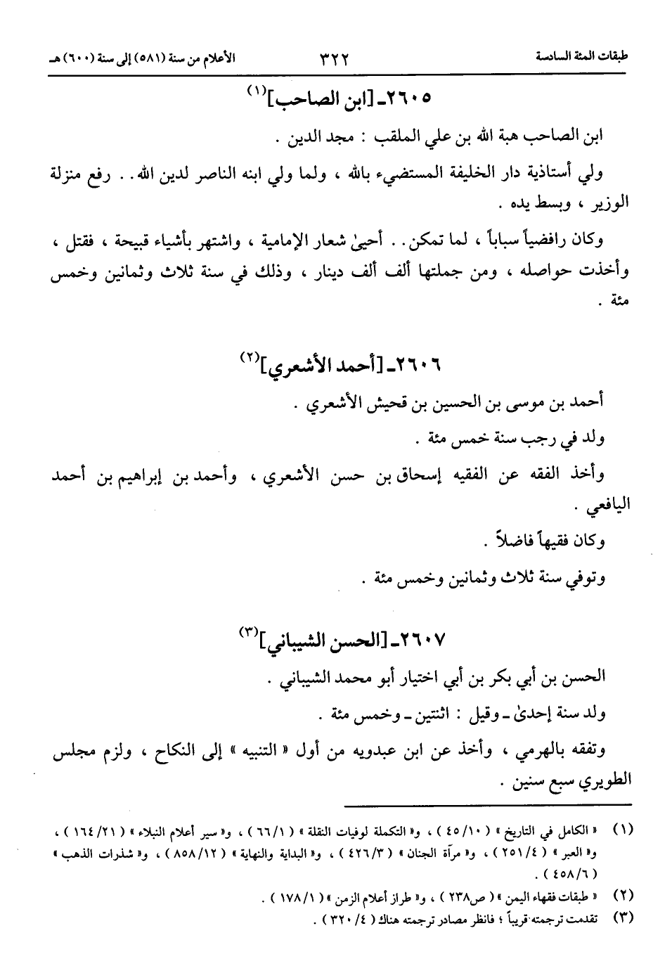 (1) «الكامل في التاريخ» (10/ 45)، و «التكملة لوفيات النقلة» (1/ 66)، و «سير أعلام النبلاء» (21/ 164)، و «العبر» (4/ 251)، و «مرآة الجنان» (3/ 426)، و «البداية والنهاية» (12/ 858)، و «شذرات الذهب» (6/ 458).
