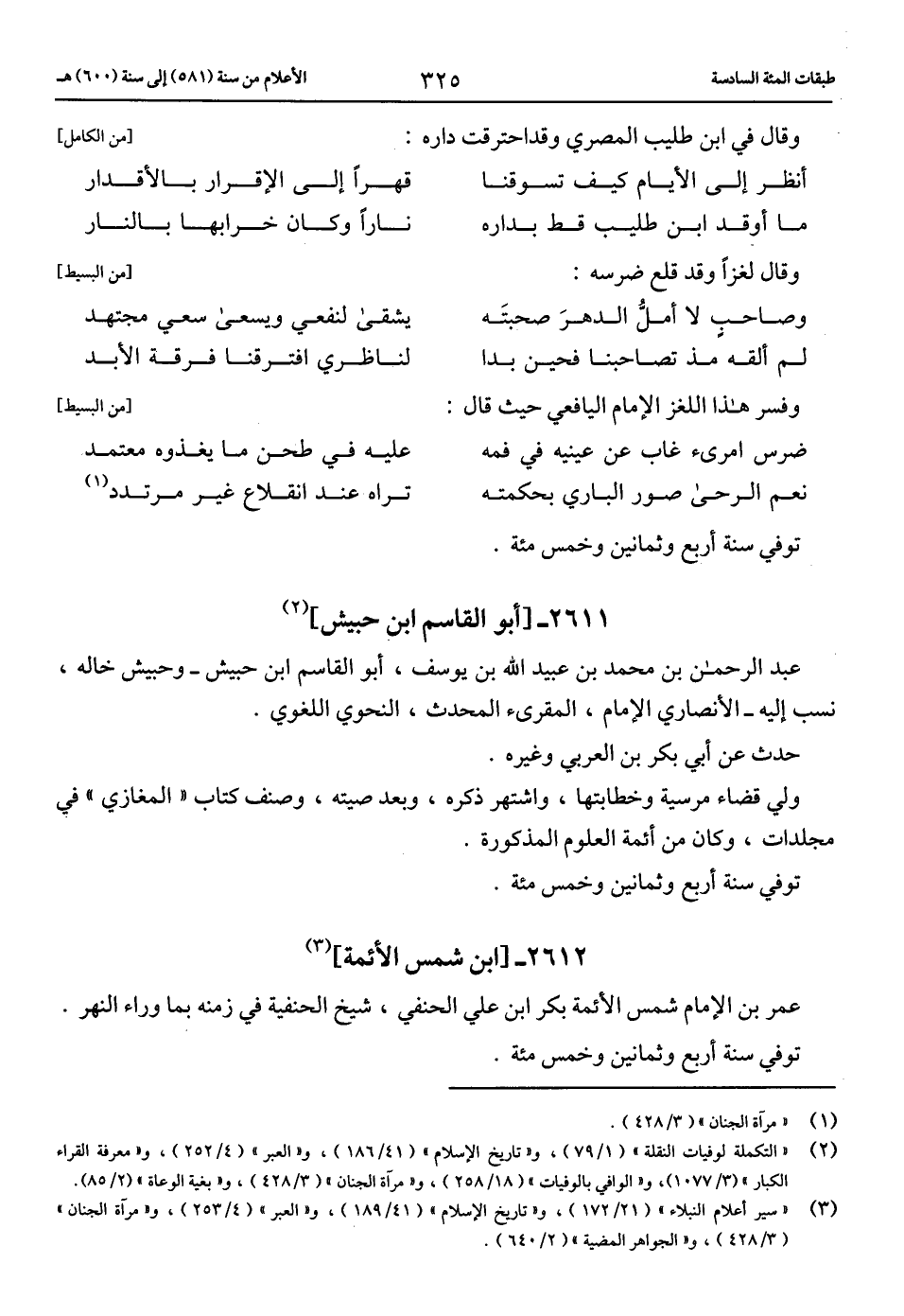 (3) «سير أعلام النبلاء» (21/ 172)، و «تاريخ الإسلام» (41/ 189)، و «العبر» (4/ 253)، و «مرآة الجنان» (3/ 428)، و «الجواهر المضية» (2/ 640).
