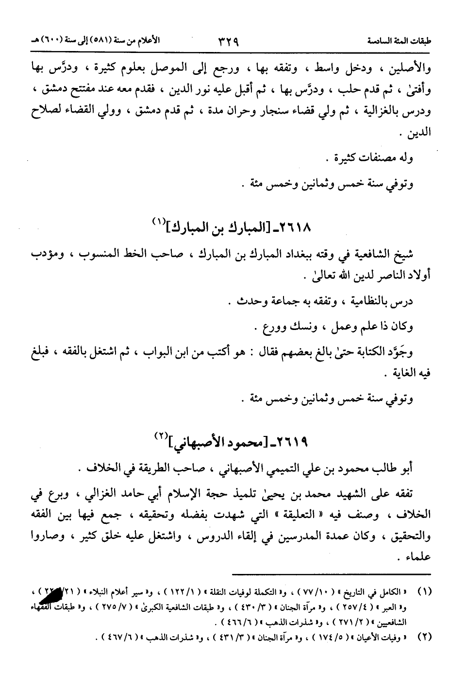 (2) «وفيات الأعيان» (5/ 174)، و «مرآة الجنان» (3/ 431)، و «شذرات الذهب» (6/ 467).