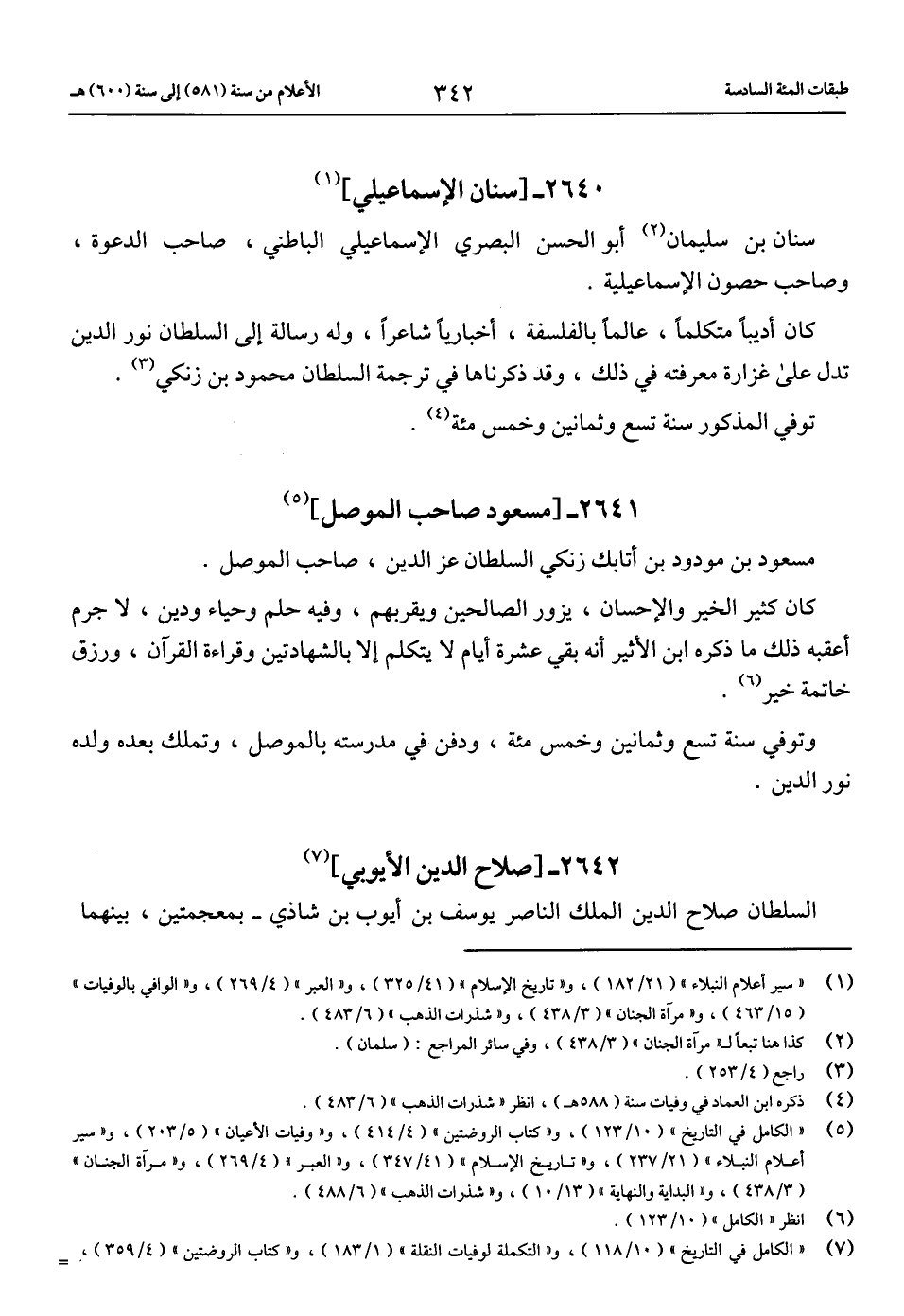 (7) «الكامل في التاريخ» (10/ 118)، و «التكملة لوفيات النقلة» (1/ 183)، و «كتاب الروضتين» (4/ 359)،