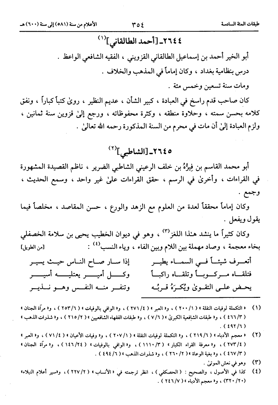(2) «معجم الأدباء» (6/ 219)، و «التكملة لوفيات النقلة» (1/ 207)، و «وفيات الأعيان» (4/ 71)، و «العبر» (4/ 273)، و «معرفة القراء الكبار» (3/ 1110)، و «الوافي بالوفيات» (24/ 146)، و «مرآة الجنان» (3/ 467)، و «بغية الوعاة» (2/ 260)، و «شذرات الذهب» (6/ 494).