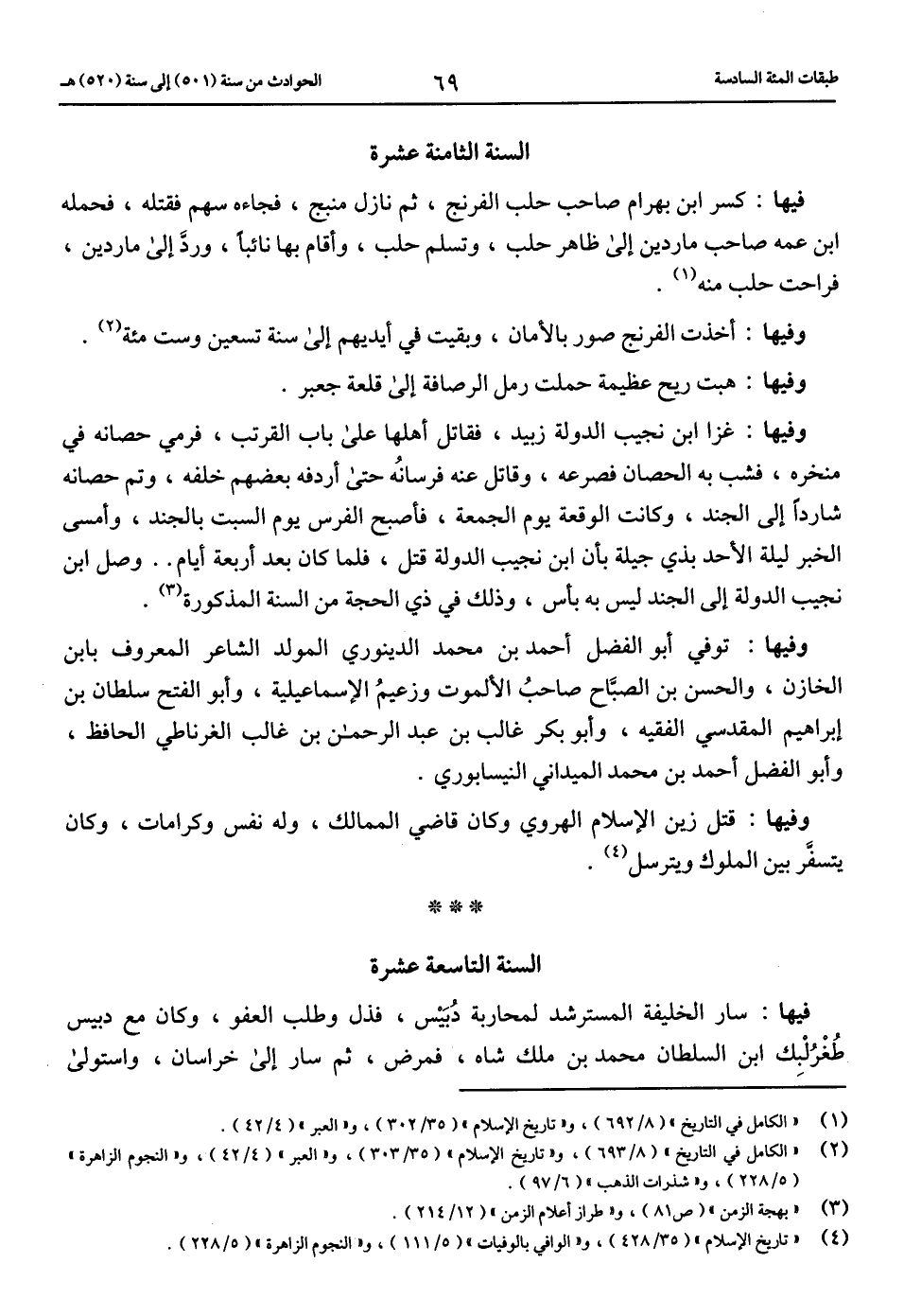 (1) «الكامل في التاريخ» (8/ 692)، و «تاريخ الإسلام» (35/ 302)، و «العبر» (4/ 42).