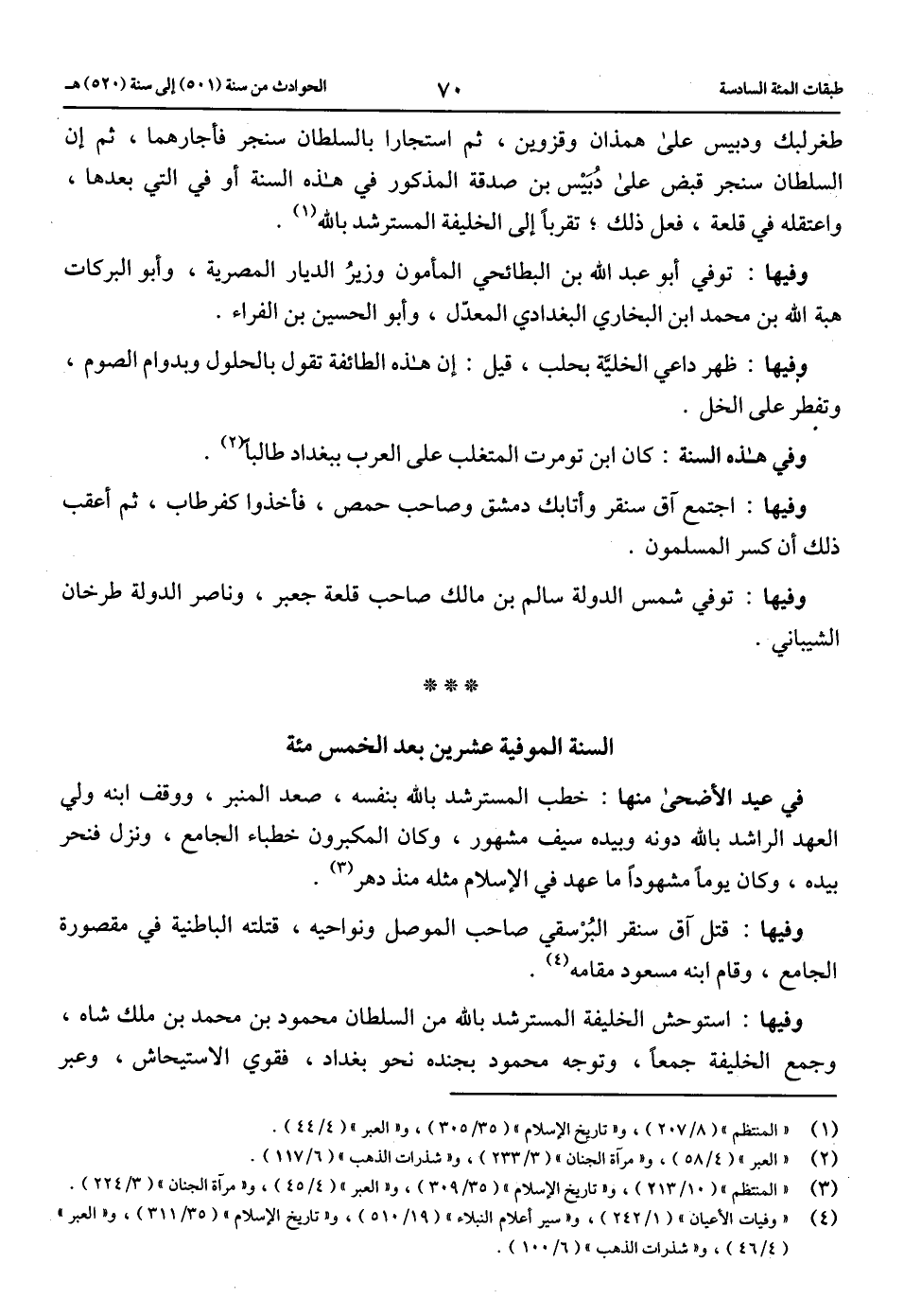 (1) «المنتظم» (8/ 207)، و «تاريخ الإسلام» (35/ 305)، و «العبر» (4/ 44).