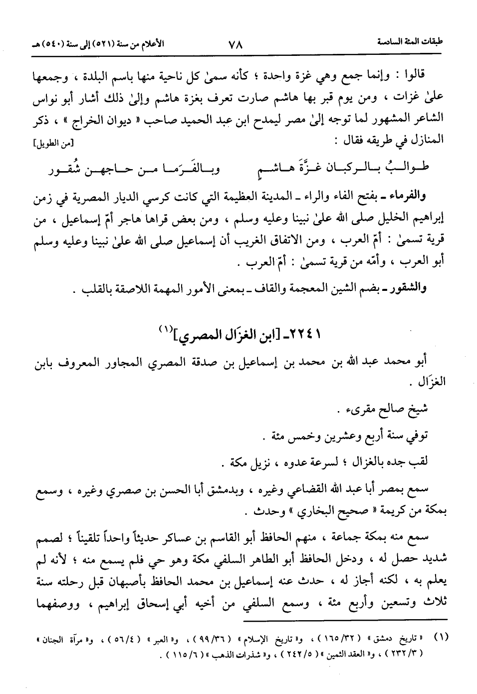 (1) «تاريخ دمشق» (32/ 165)، و «تاريخ الإسلام» (36/ 99)، و «العبر» (4/ 56)، و «مرآة الجنان» (3/ 232)، و «العقد الثمين» (5/ 242)، و «شذرات الذهب» (6/ 115).