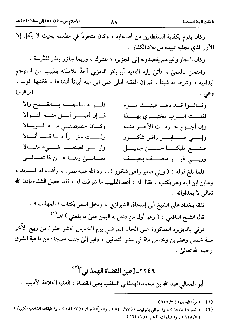 (2) «العبر» (4/ 65)، و «الوافي بالوفيات» (17/ 540)، و «مرآة الجنان» (3/ 244)، و «طبقات الشافعية الكبرى» (7/ 128)، و «شذرات الذهب» (6/ 124).