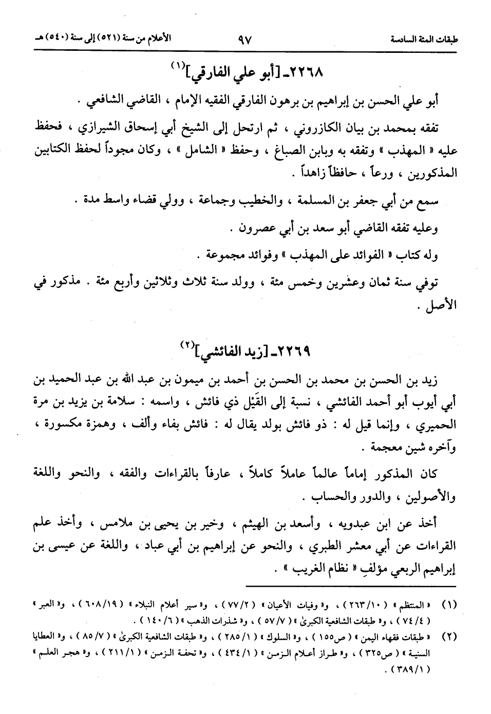 (1) «المنتظم» (10/ 263)، و «وفيات الأعيان» (2/ 77)، و «سير أعلام النبلاء» (19/ 608)، و «العبر» (4/ 74)، و «طبقات الشافعية الكبرى» (7/ 57)، و «شذرات الذهب» (6/ 140).