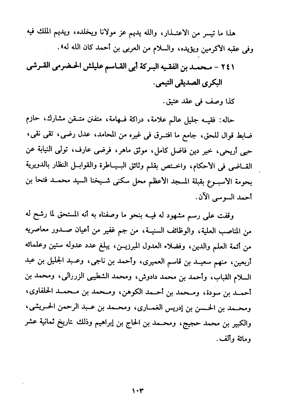 241 - محمد بن الفقيه البركة أبى القاسم عليلش الحضرمى القرشى البكرى الصديقى التيمى.