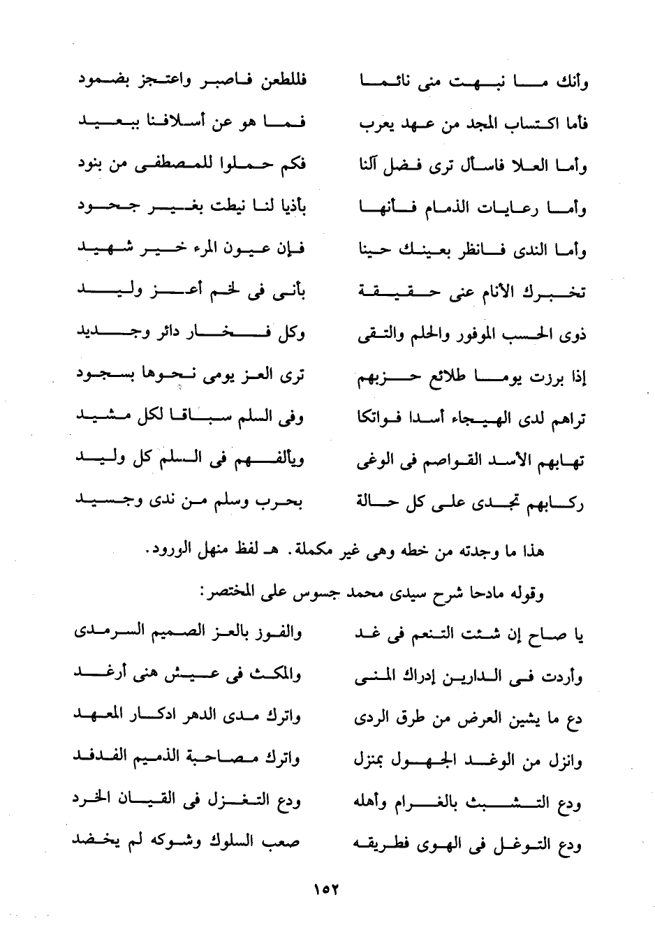 هذا ما وجدته من خطه وهي غير مكملة. هـ لفظ منهل الورود.