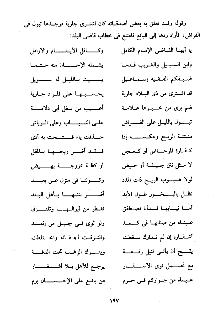 يا أيها القاضى الإمام الكامل ... وكافل الأيتام والأرامل