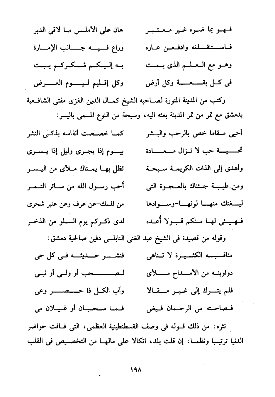 وقوله من قصيدة في الشيخ عبد الغنى النابلسي دفين صالحية دمشق: