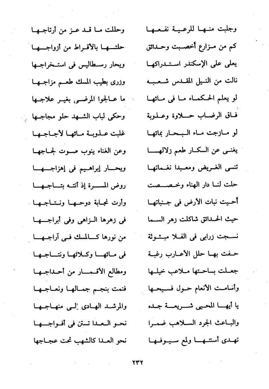 كم من مزارع أخصبت وحدائق ... حلتها بالأقراط من أزواجها