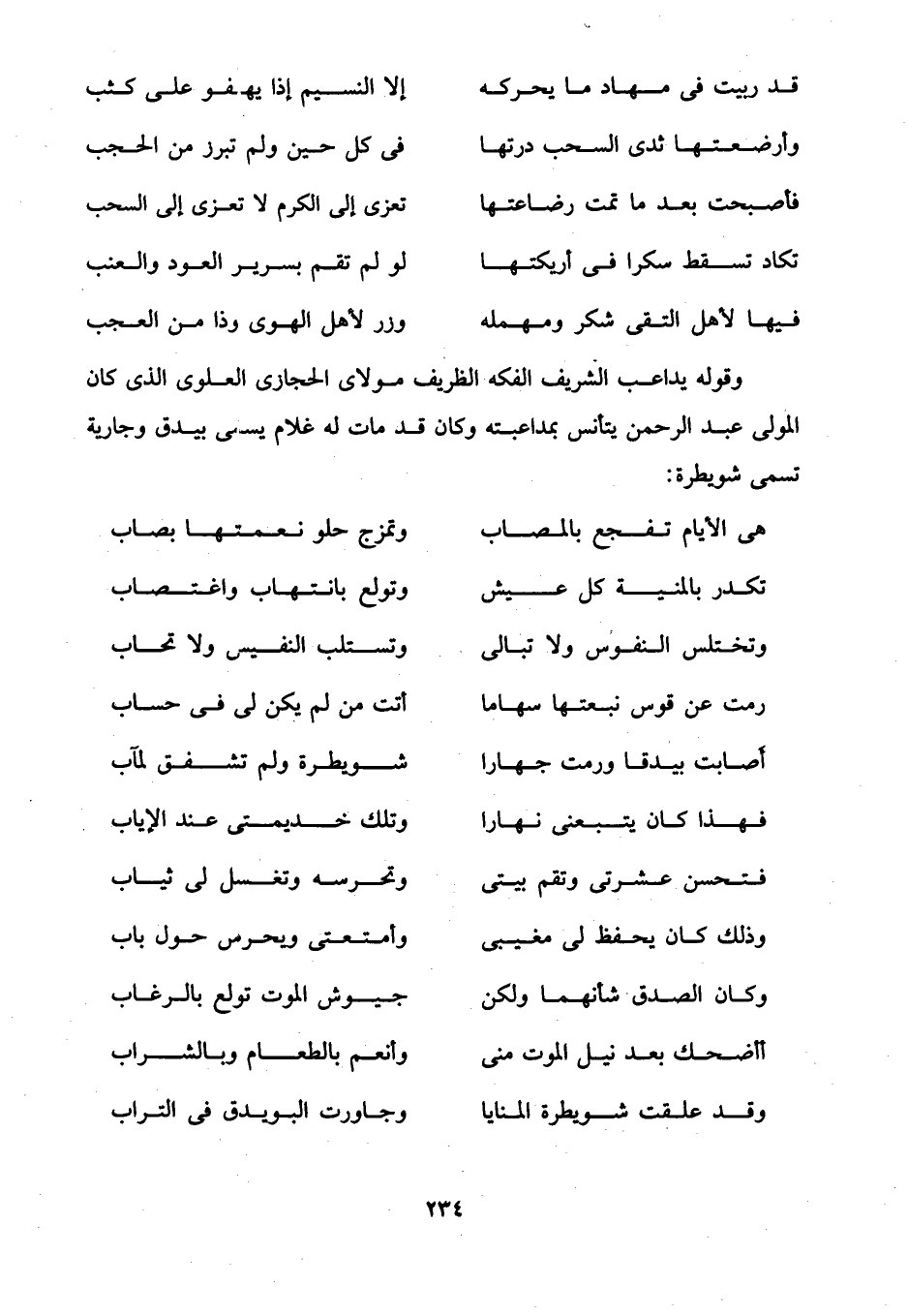 وقوله يداعب الشريف الفكه الظريف مولاى الحجازى العلوى الذي كان المولى عبد الرحمن يتأنس بمداعبته وكان قد مات له غلام يسمى بيدق وجارية تسمى شويطرة: