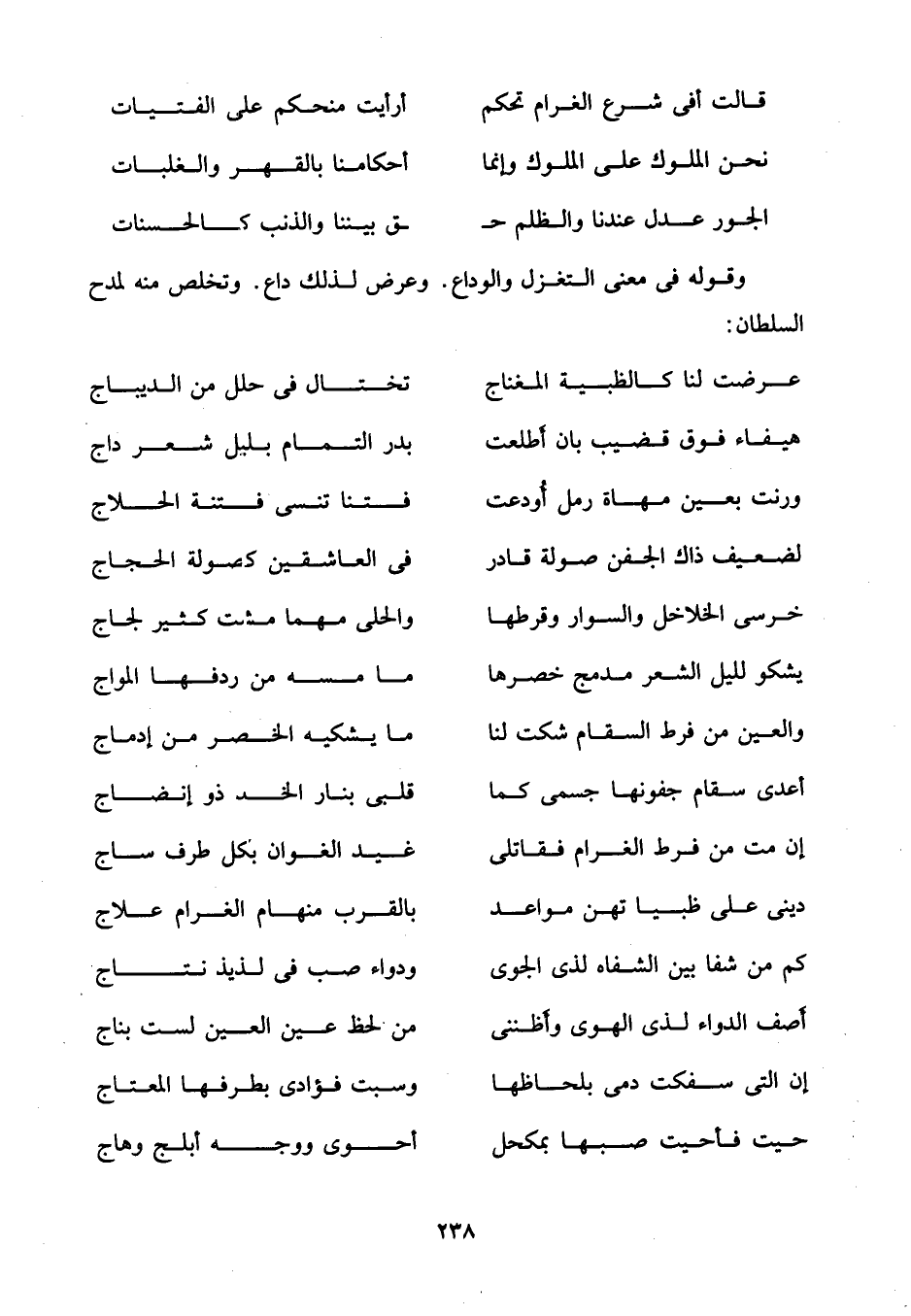 وقوله في معنى التغزل والوداع. وعرض لذلك داع. وتخلص منه لمدح السلطان: