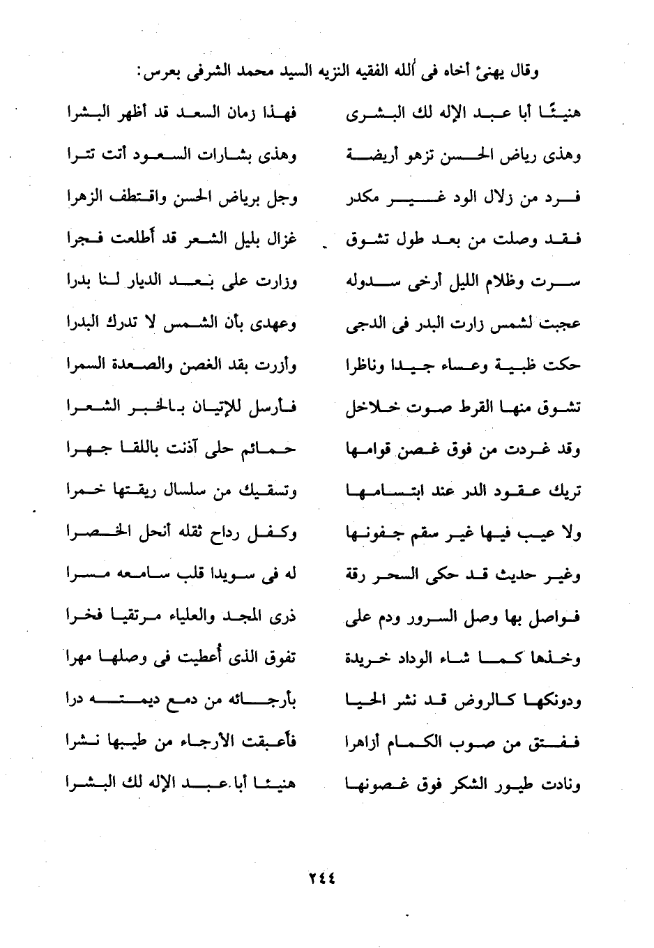 وقال يهنئ أخاه في الله الفقيه النزيه السيد محمد الشرفى بعرس: