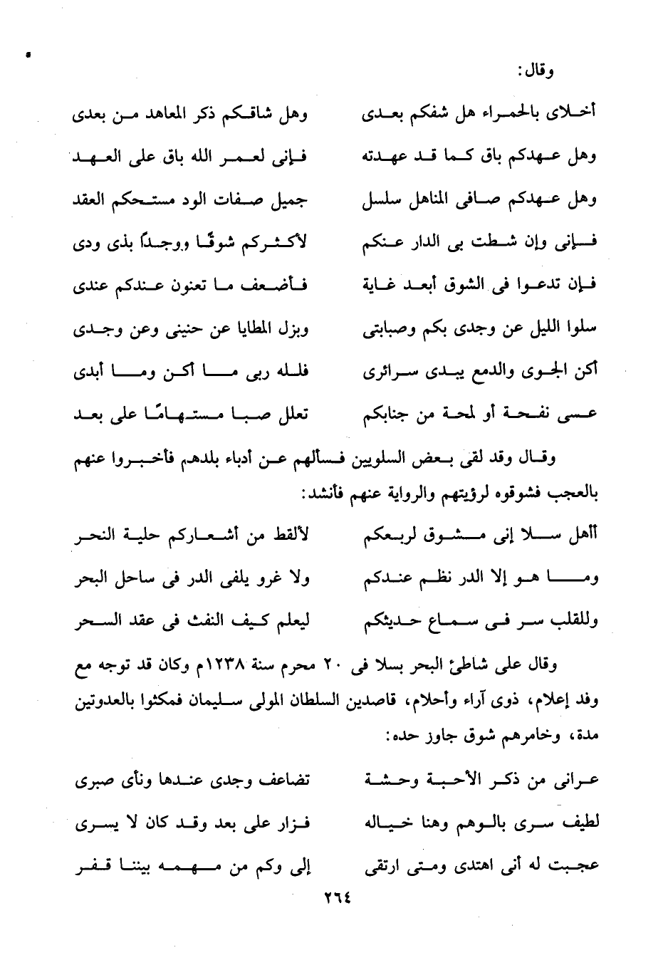وقال على شاطئ البحر بسلا في 20 محرم سنة 1238 م وكان قد توجه مع وفد إعلام، ذوى آراء وأحلام، قاصدين السلطان المولى سليمان فمكثوا بالعدوتين مدة، وخامرهم شوق جاوز حده: